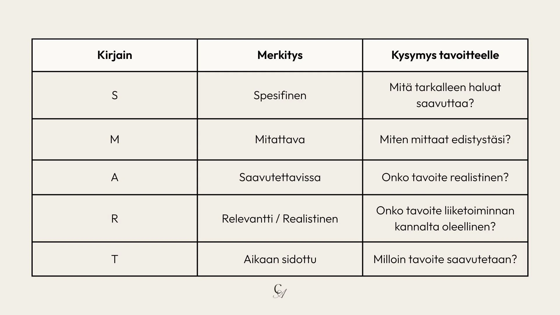Yksi tehokkaimmista tavoiteasetannan työkaluista on SMART-malli. Sen avulla varmistat, että jokainen tavoite on: